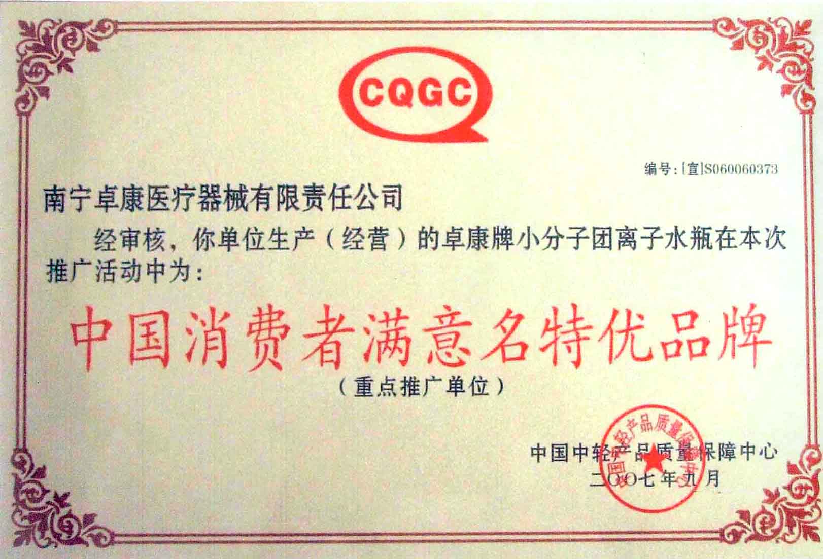 卓康牌離子水瓶榮獲中國企業(yè)名優(yōu)產(chǎn)品[點(diǎn)小圖見大圖]、中國著名品牌稱號[點(diǎn)小圖可見大圖]
