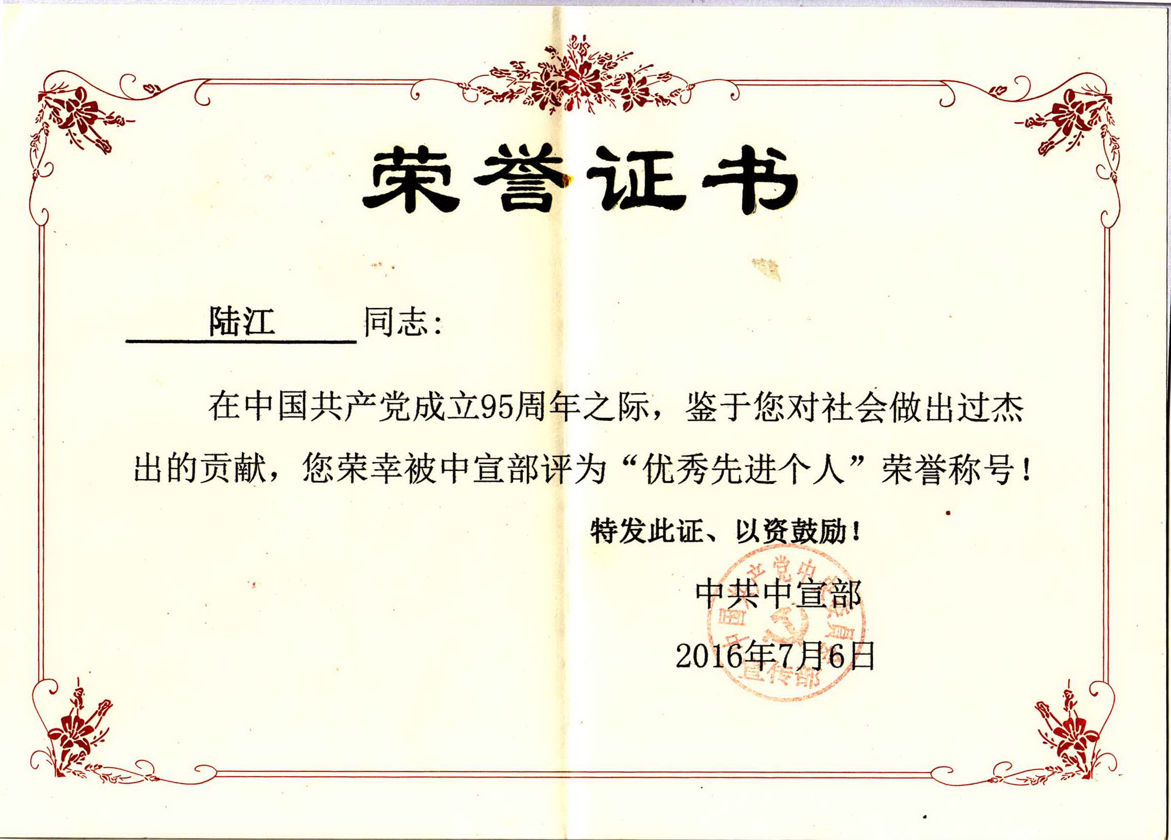 陸江的論文獲一等獎(jiǎng)榮譽(yù)證書-- 陸江論文獲創(chuàng)新論文獎(jiǎng)牌