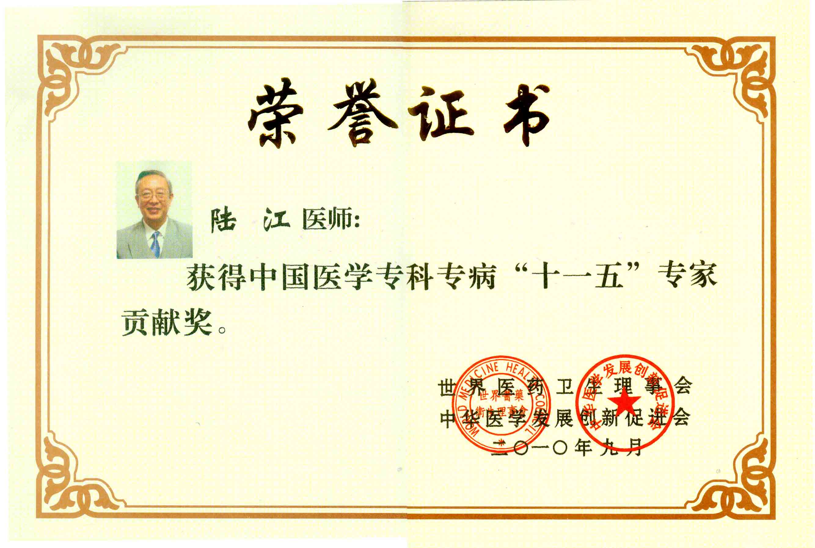 陸江獲得中國醫(yī)學(xué)專科專病優(yōu)秀專家恃別貢獻(xiàn)獎(jiǎng)