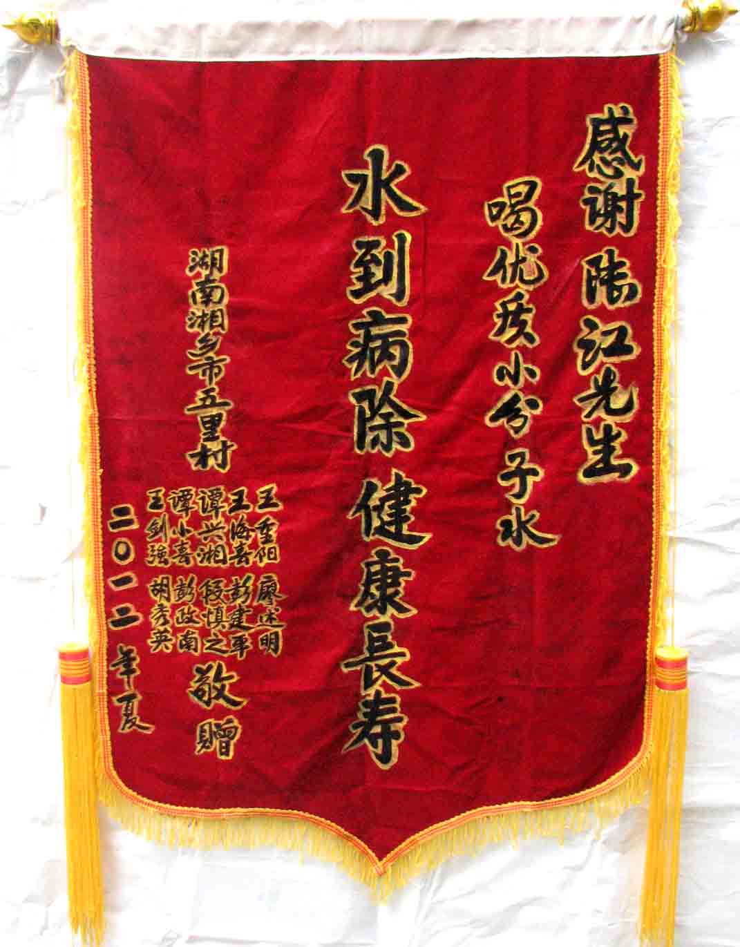2015年潘志山主動(dòng)寫一篇感想《我以親身實(shí)踐打破了冠心病、高血壓、糖尿病需終生服藥的神話》說:“堅(jiān)持按發(fā)明人陸?江先生倡導(dǎo)的用‘已饑方食’的方法合理膳食,我的健康狀況越來越好:糖尿病造成的視力下降有了明顯的恢復(fù),末梢神經(jīng)炎導(dǎo)致的指端潰爛現(xiàn)在完全痊愈,痔瘡自從飲用微小分子團(tuán)水半年后就再也沒有復(fù)發(fā)過,氣滯血瘀造成的嘴唇暗紫也漸漸變得紅潤,舌下靜脈黑紫消失,足背的動(dòng)脈由以前的隱約感到跳動(dòng)現(xiàn)在變得清晰有力。”[13]潘先生披露的訣竅,一是飲用微小分子團(tuán)水給脫水細(xì)胞補(bǔ)水,二是“已饑方食”養(yǎng)生智慧,患者都能做到。
